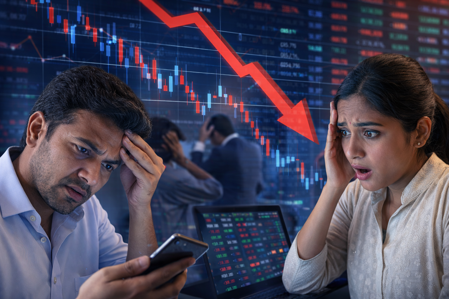 ఇటీవల జరిగిన ట్రేడింగ్ సెషన్‌లో భారత స్టాక్ మార్కెట్ గణనీయమైన పతనాన్ని నమోదు చేసింది. ప్రధాన సూచీలు అయిన సెన్సెక్స్ మరియు నిఫ్టీ రెండూ ఒకే రోజు లోపల గణనీయంగా తగ్గాయి. మార్కెట్ ప్రారంభమైన కొద్దిసేపటికే అమ్మకాల ఒత్తిడి పెరిగింది.